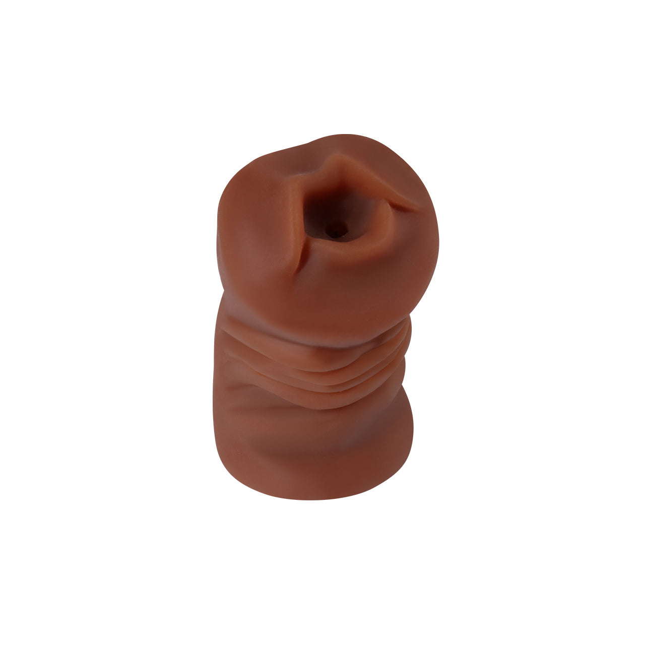 This super tight throat fuck is begging you to go balls deep! She fits perfectly in your hand for you to create pressure on your shaft. Her tight textured mouth grips and suctions around your cock as you work it. Take her for a ride any time you want with this convenient and easy to clean stroker.