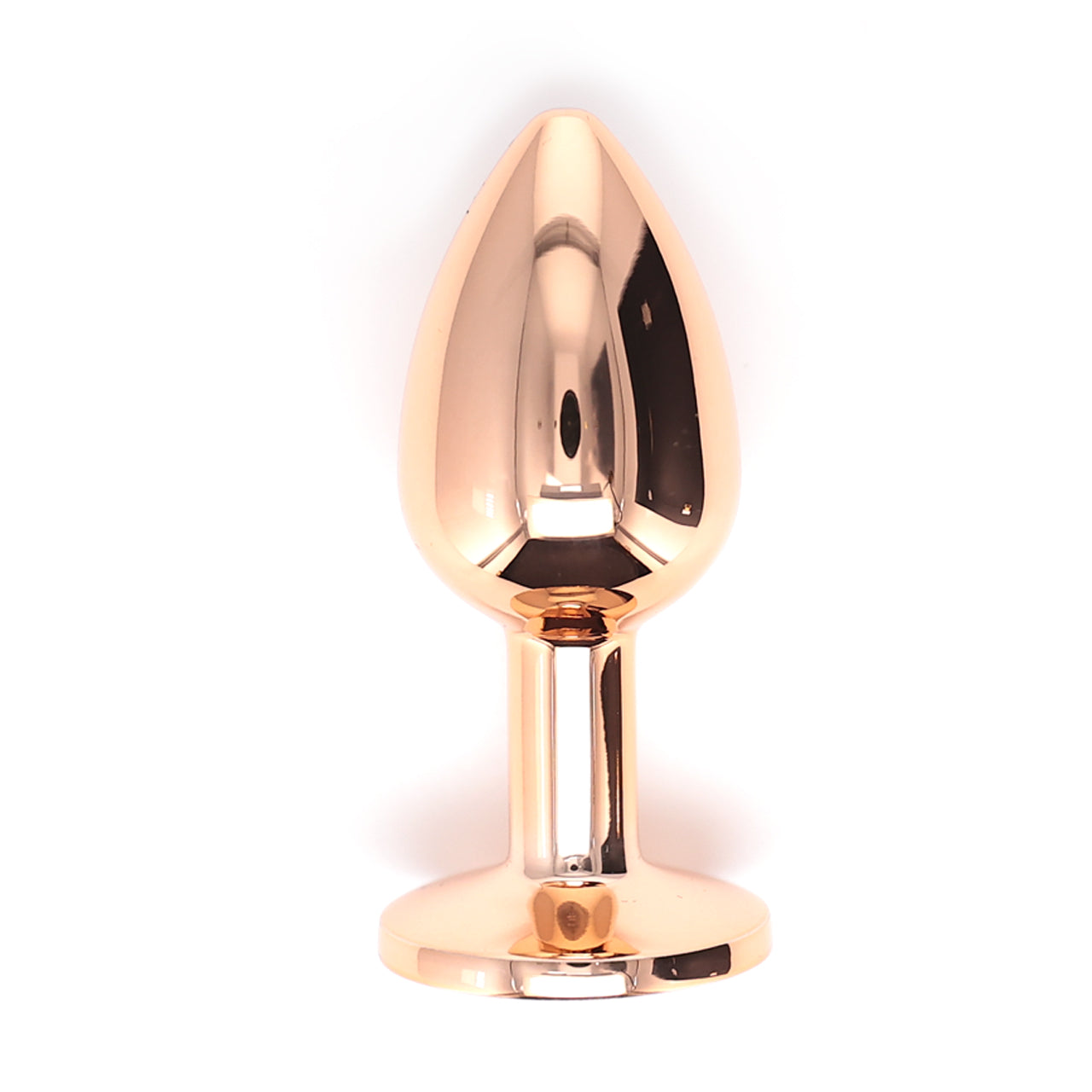 Enhance your anal play with BJ STAINLESS STEEL PLUG -ROSE GOLD-PK JEWEL-S. This eye-catching anal plug features vibrant zirconia crystals at the base, adding a touch of glamour to your experience. Available in 3 sizes and multiple colors, choose the perfect one for your needs. Feel extra sensual and add a little sparkle to your playtime.