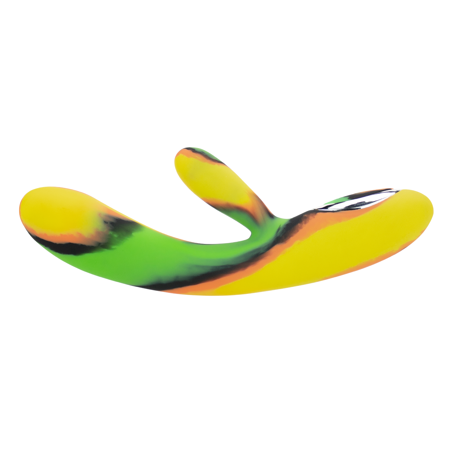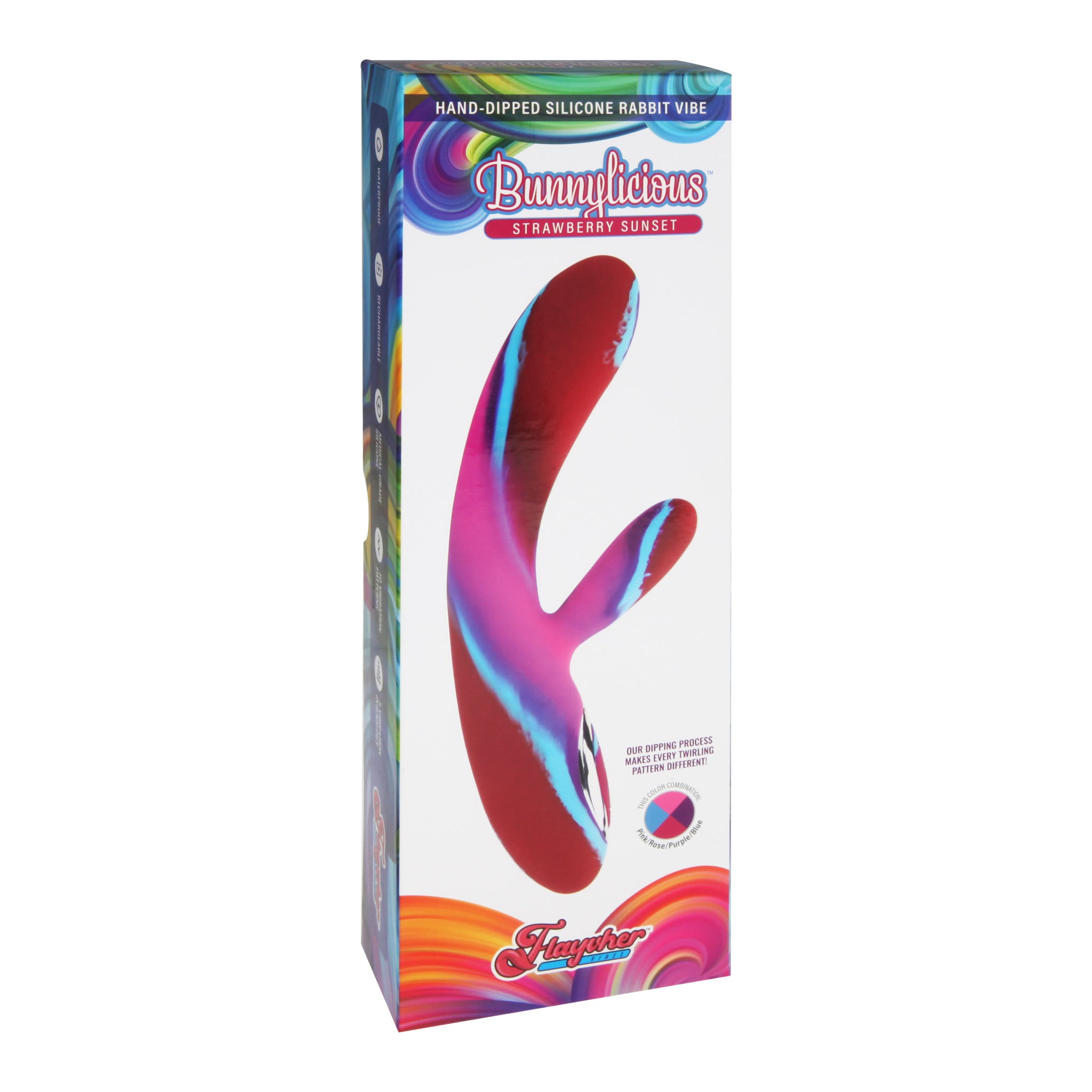 Get a taste of fun with the Bunnylicious rabbit vibe! Explore the 12 different vibration settings that rumble through the rounded shaft and flexible clitoral tickler. Not enough? Use the intensity button to increase the strength of vibration as many as 5 times! The simple 3-button control allows you to adjust your perfect setting that will send you into dripping climax! Use the USB charging cord to keep your candy swirl vibe ready whenever you get those sweet cravings. This is guilt-free pleasure you can binge on!