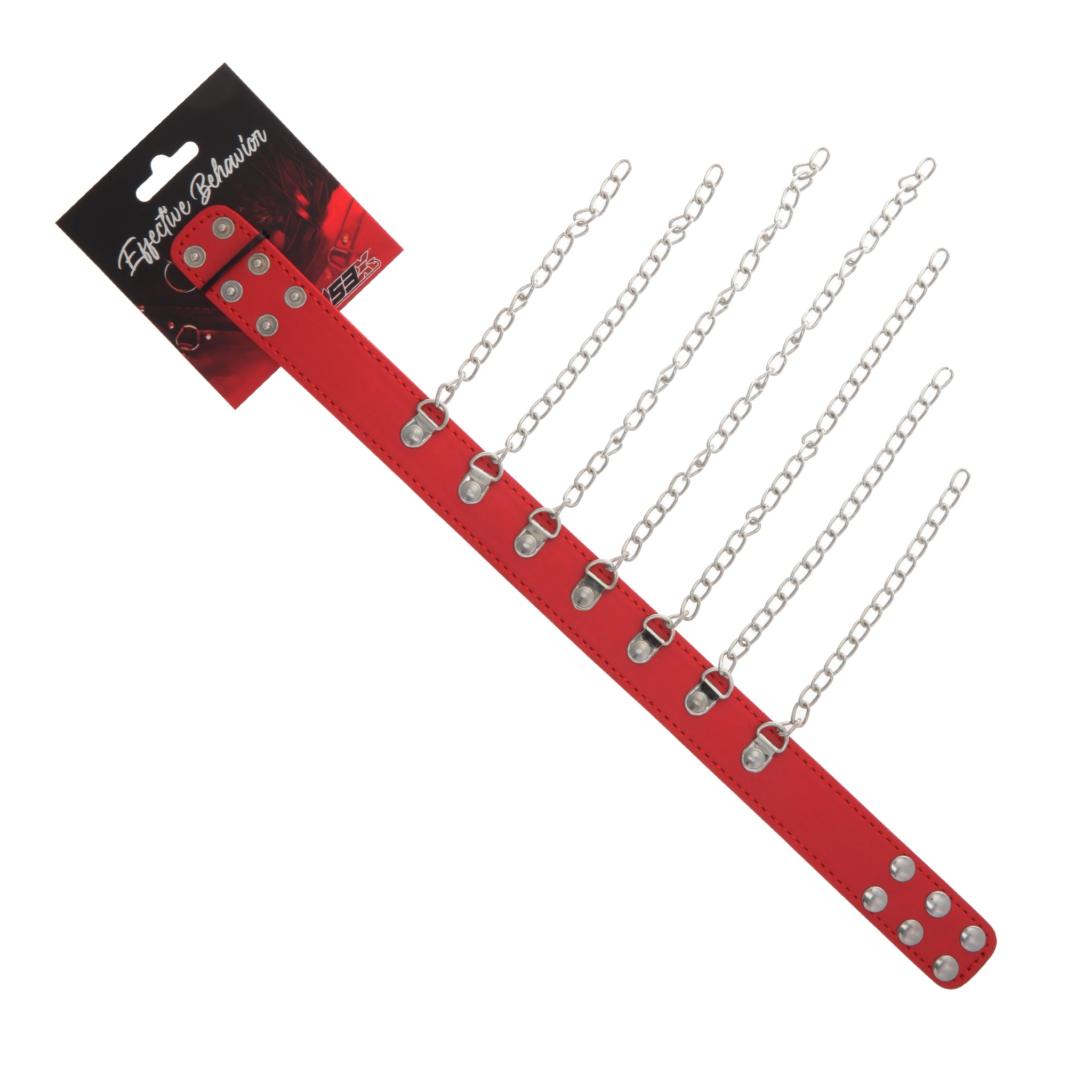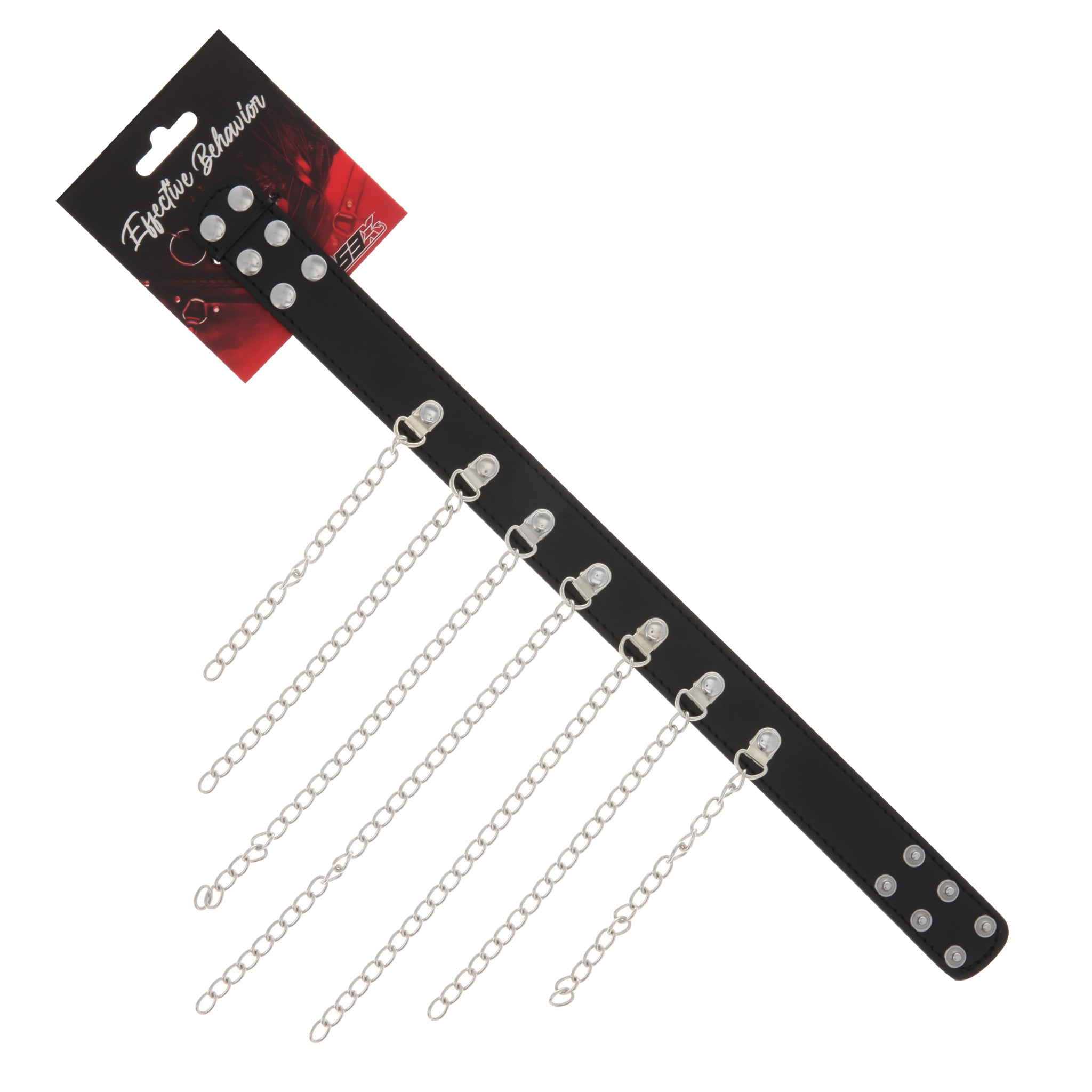 Draw attention with this bold fashion collar by 53X! Perfect for a night out or a night in the bedroom, this collar boasts seven hanging chains in the front that end in a perfect taper. The easy snap-buttons in the back provide three different sizes and makes this collar the perfect accessory for throwing on taking right off!