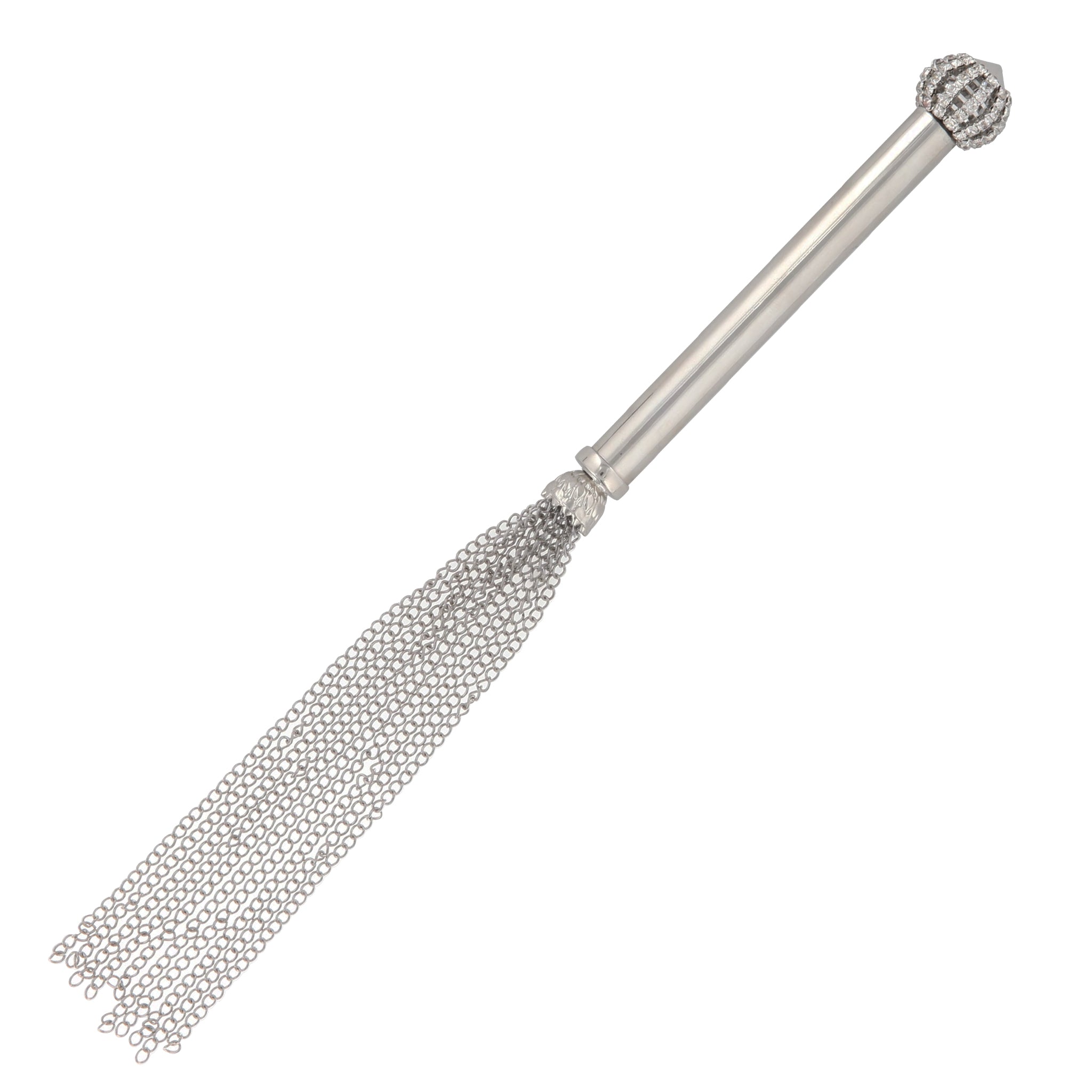 Feel the stinging kiss of this jeweled chain flogger by 53X. Tickle your lover's body with the 10 chain tassels, or amp up the voltage when you also pair it with the Shockgasm Electro Play Wand and silicone Power Tripper wand attachment!