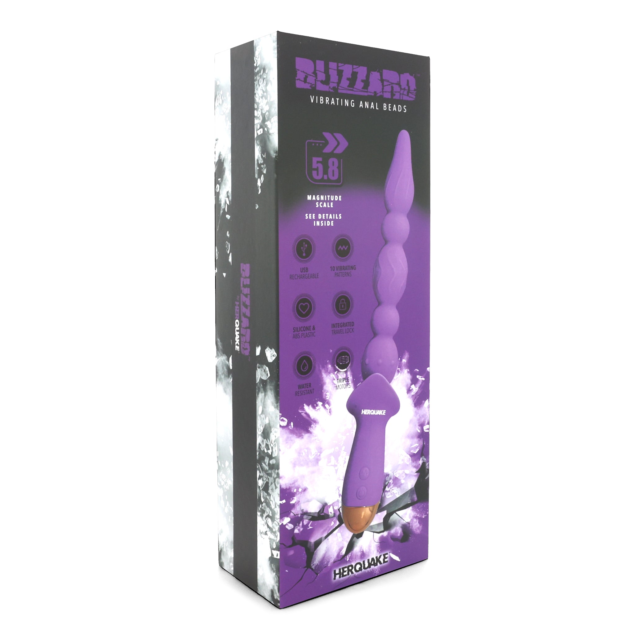 Our Extra Strong Vibrating Anal Beads feature vibrating anal beads with pleasure ridges on each bead and an ergonomic handle for easy holding during anal play. Like all HERQUAKE brand sex toys, this bum buster, called the Blizzard, is powerful. Three independent motors channel intense vibrations throughout the flexible, segmented anal probe. Cycle through the 10 different vibration patterns and intensities and decide which one is best for your butt. The tapered tip is elongated for a pleasurable entry into the anus before inserting the 4 additional segments of alternating girths.