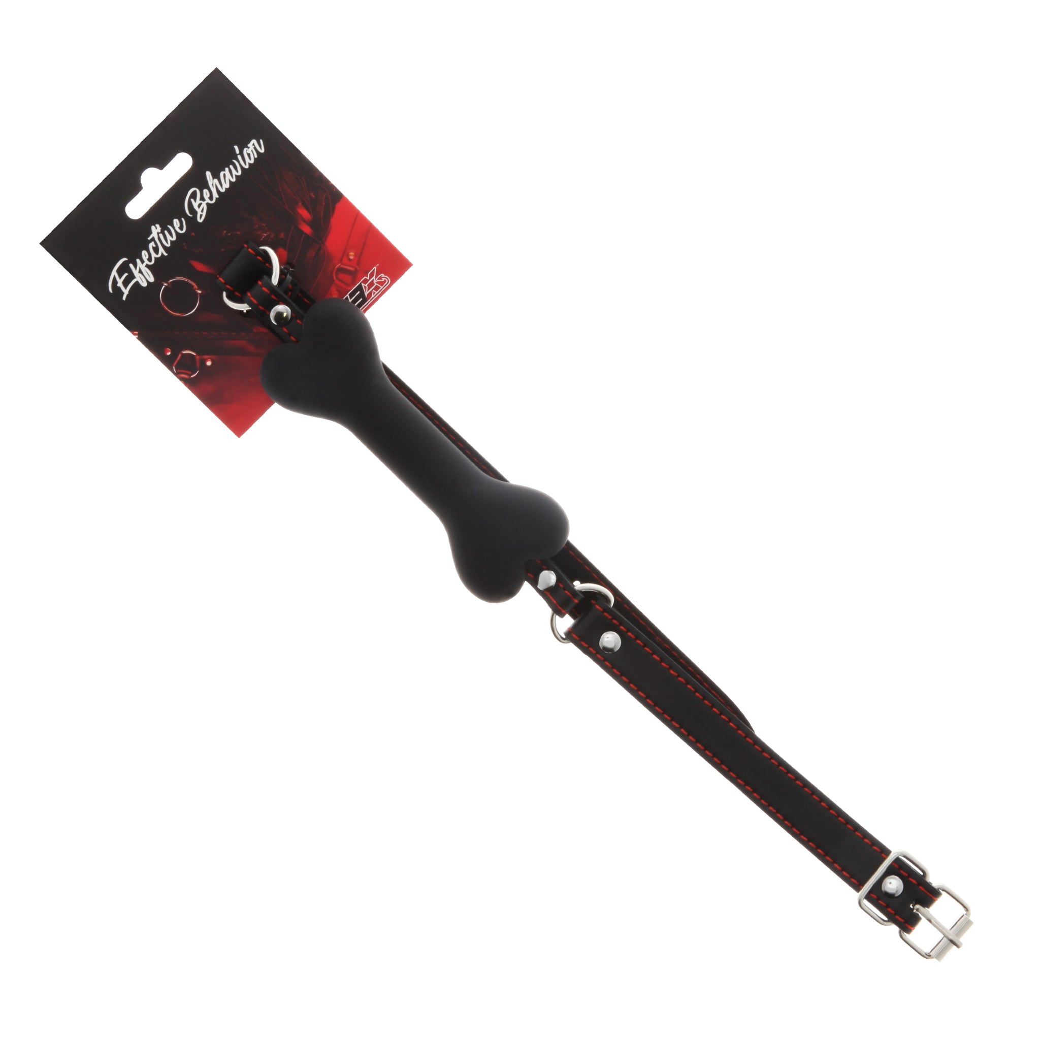 Attain effective behavior with this kinky twist on a gag restraint by 53X! Ideal for beginners and experienced users alike, the gag itself is shaped like a dog bone and is made of soft, bendable silicone for an extra comfortable fit. The single-stitched PVC straps fasten in the back with an adjustable buckle clasp. So enjoy optimum comfort while playing out your erotic fantasies!