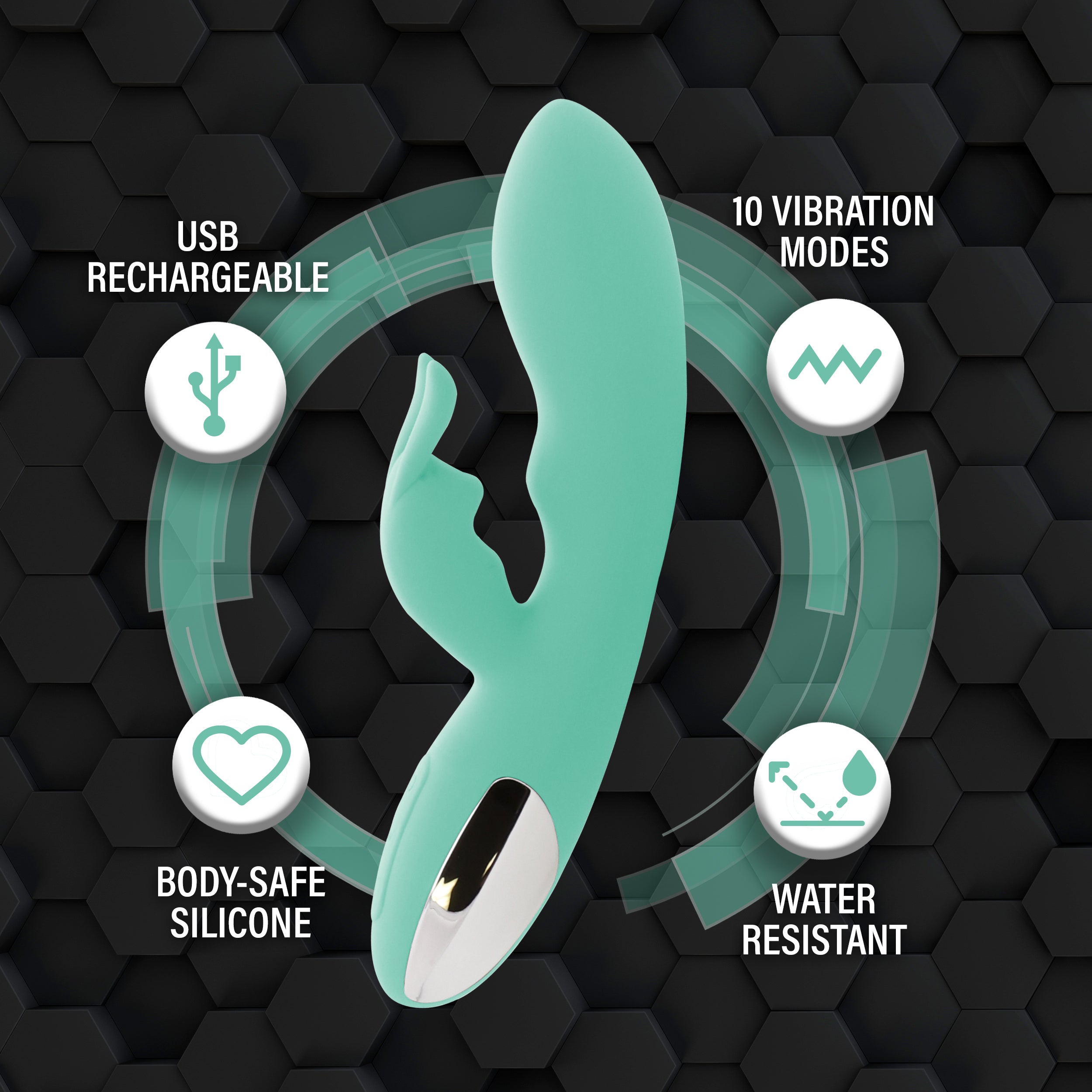 Both stimulators are specially grooved to arouse even more sensitive nerve endings than other rabbit vibes can. The clitoral tickler applies glorious pressure from both sides of your clitoral complex, while the swells on the shaft massage your G-spot and target all the nerves in your urethral wall!