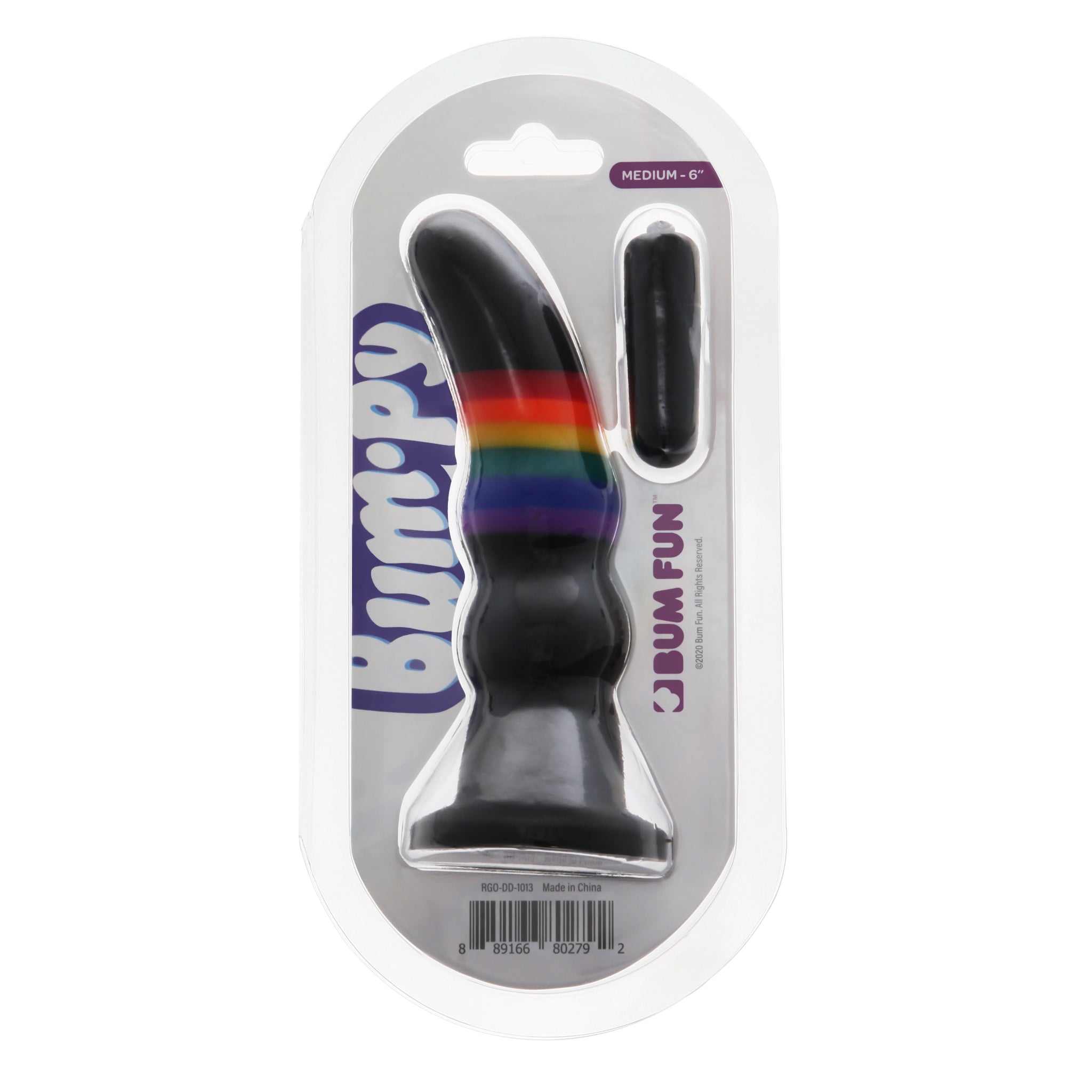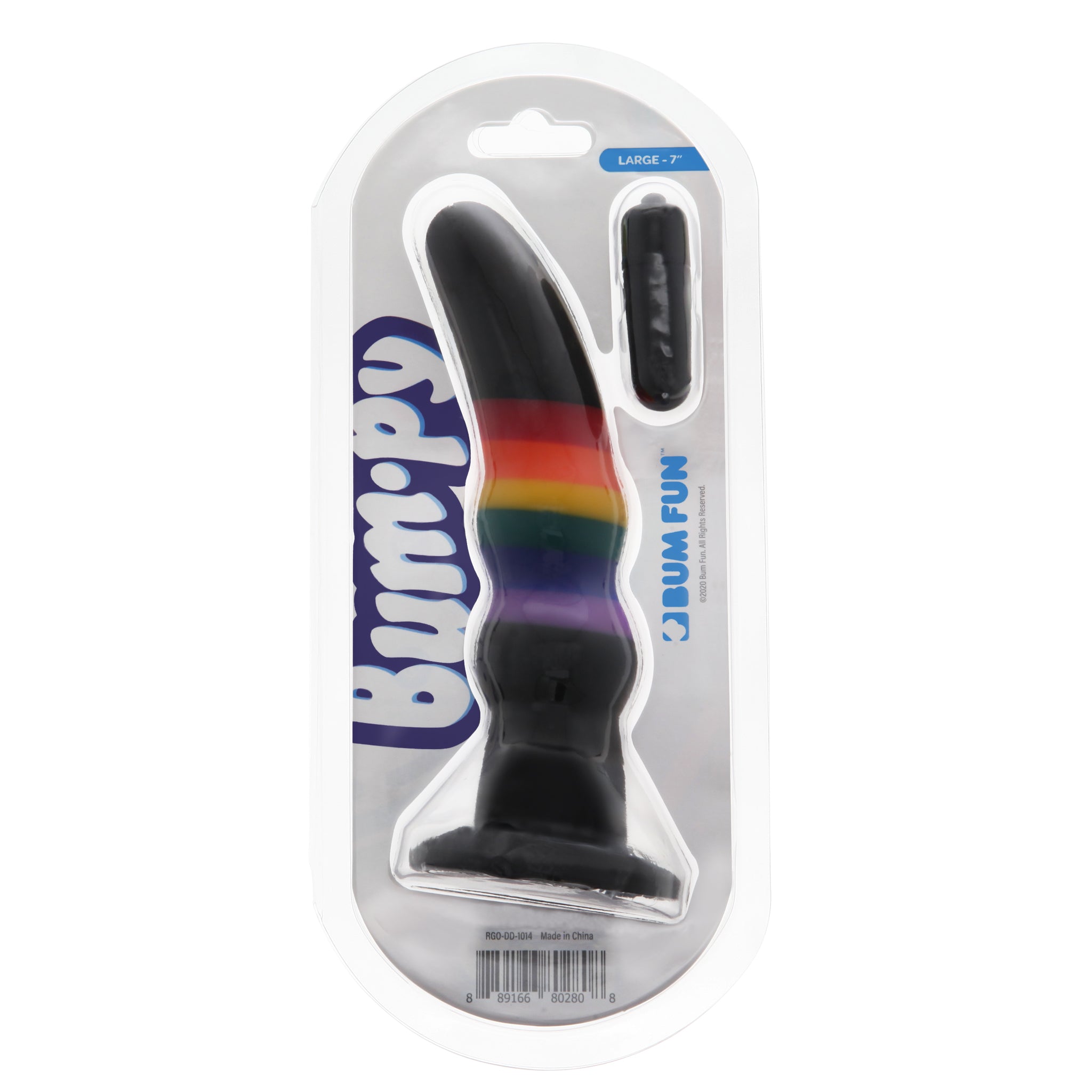 In the mood for some kinky pegging fun? The Bum-py vibrating pegging probe has a slightly curved shaft with 2 flared points for stimulating pleasure during thrusting. Enjoy 7 different vibration patterns from the optional insertable bullet vibe that will make the rainbow quiver. Bum-py is available in 3 sizes to let you choose your preferred size or work your way up!
