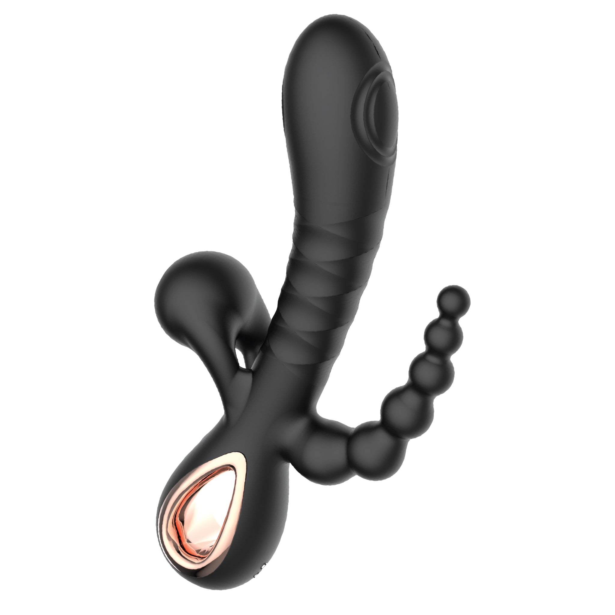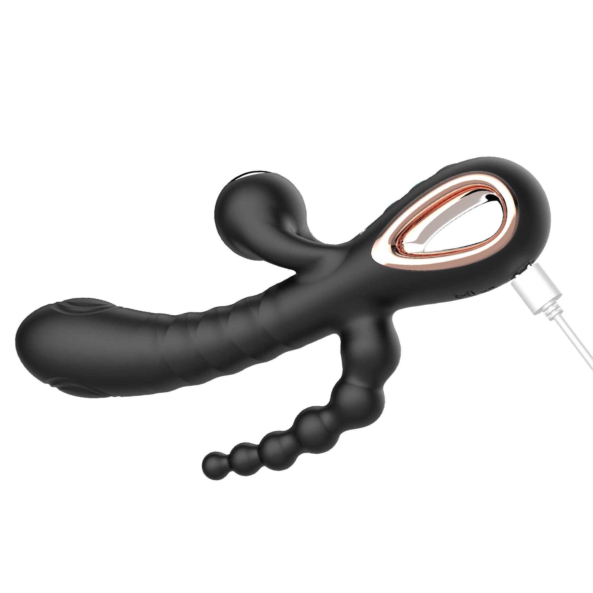 3-IN-1 DOUBLE ENDED RABBIT VIBRATOR WITH ANAL BEAD PLAY