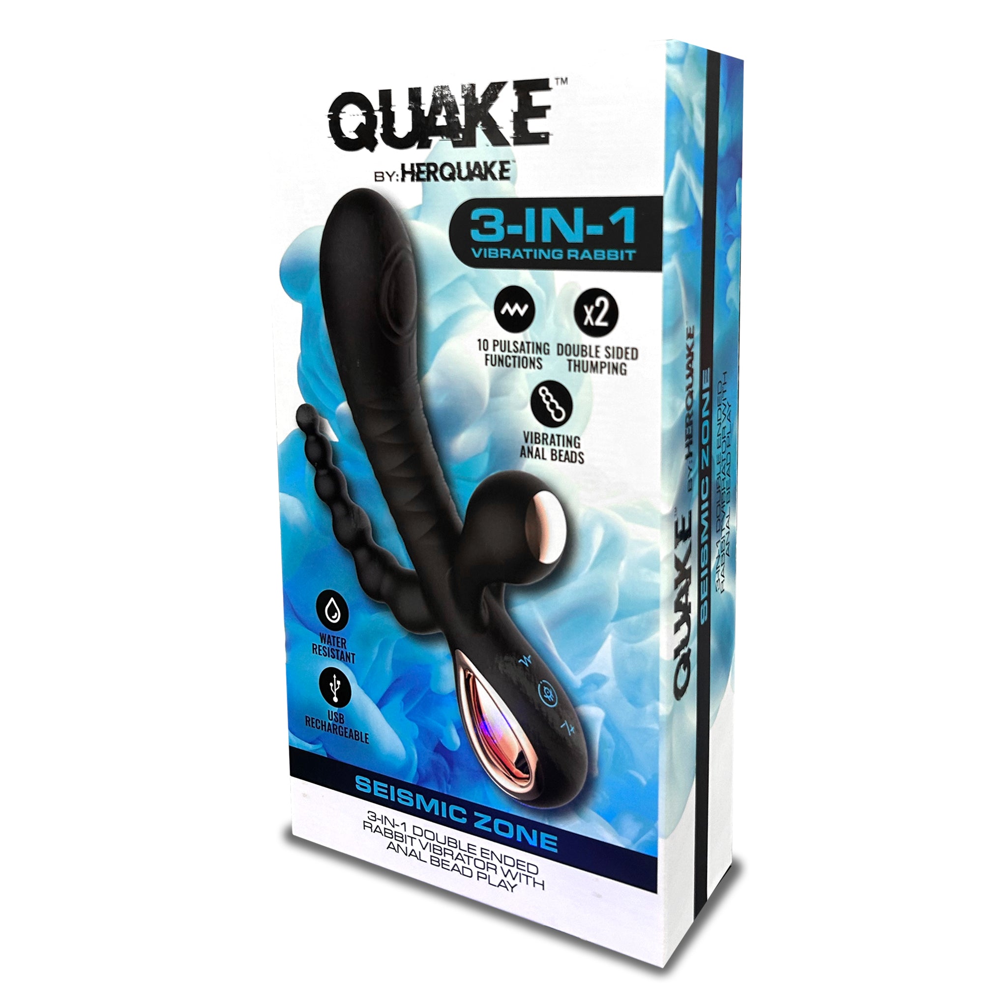 Experience the ultimate in personalized pleasure with the Seismic Zone. This 3-in-1 Dual-Ended Rabbit Vibrator is designed to offer three distinct types of stimulation—thumping, pulsating, and vibration.The Seismic Zone lets you customize your experience with 10 modes for each function. Whether you're seeking clitoral play, or anal ecstasy, the Seismic Zone ensures targeted relief and unparalleled pleasure!