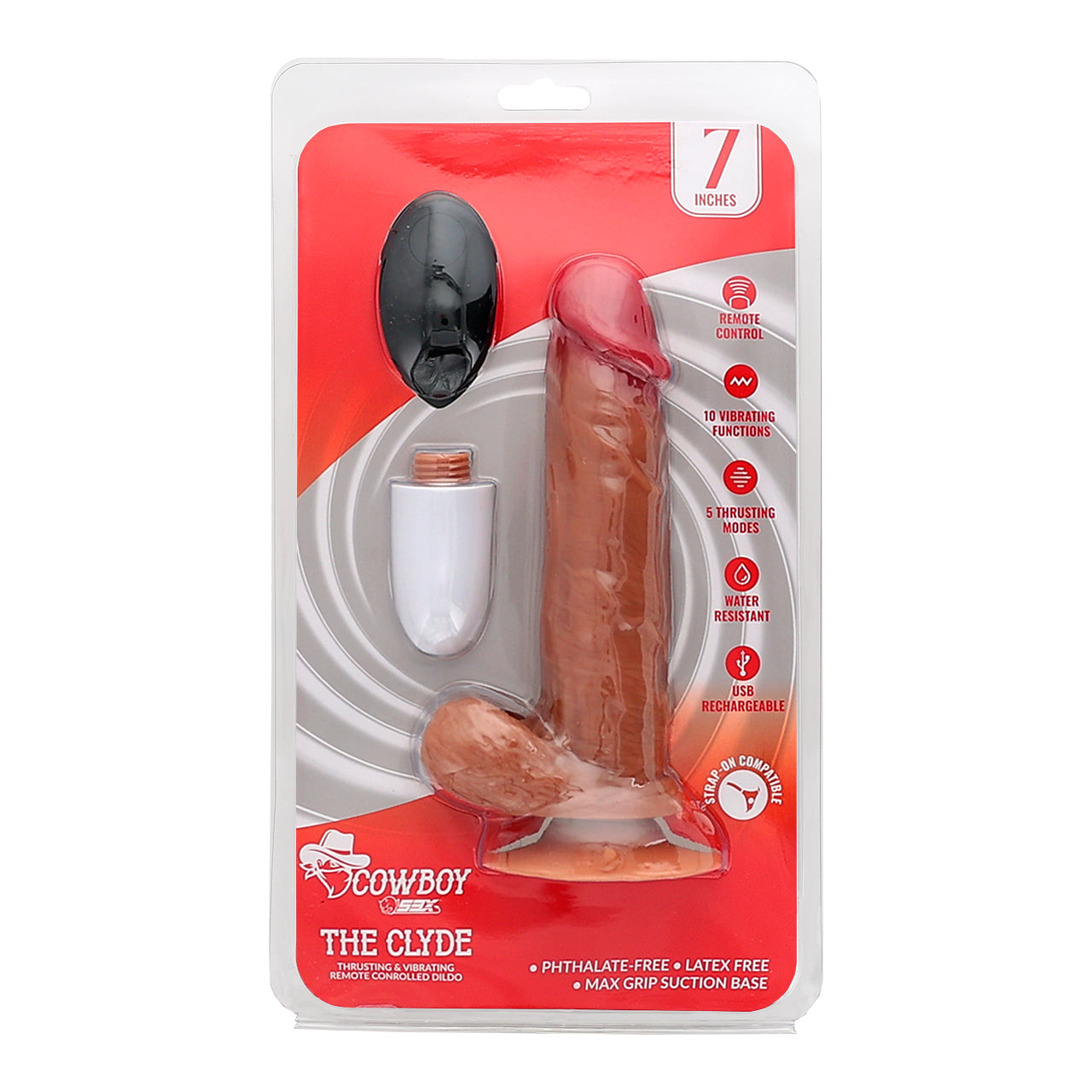 Introducing The Clyde, a vibrating and thrusting remote controlled dildo. Crafted with meticulous attention to detail, thisproduct boasts a true-to-life form, providing an unparalleled, authentic sensory journey, elevating personal exploration tonewheights. With it’s 10 vibration frequencies and 5 thrusting modes, the Clyde will truly satisfy your sexual needs.Whether you’re alone or with a partner, The Clyde will not dissapoint!
