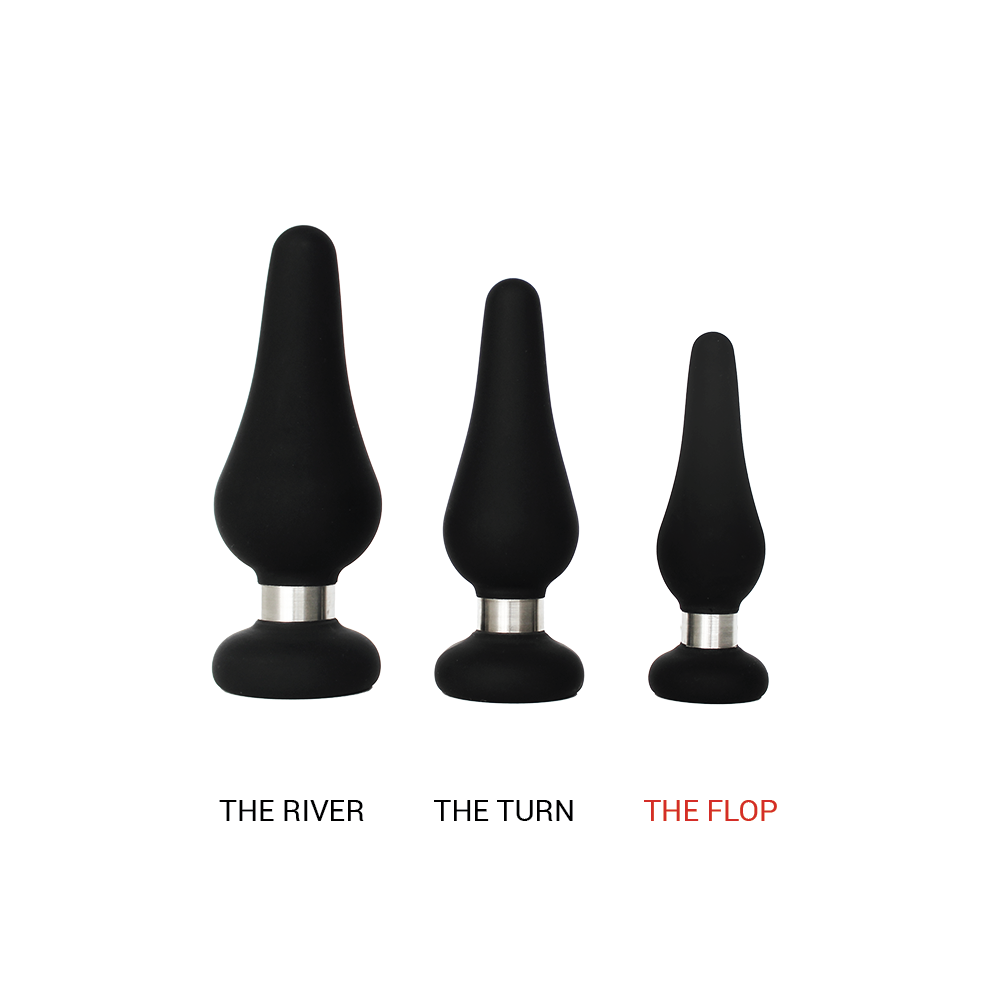 The Flop Anal Plug is crafted from soft smooth silicone, featuring a thin metal band near the base. The tapered, bulbous shape will deal up a generous portion of pleasure, perfect for the anal toy beginner. The thicker, bulbous portion will stay in place, while dealing up an extra kick of pleasure and a fuller feeling during insertion and removal. The flared base provides a safe shape for all types of play. Start with the Flop and work your way up to the Turn and the River for more adventurous anal play.