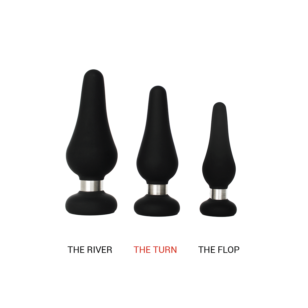 The Turn anal plug is the perfect intermediate butt plug for anal exploration, featuring a sleek shaft and a smooth, rounded base. The thicker, bulbous portion will stay in place, while dealing up an extra kick of pleasure and a fuller feeling during insertion and removal. The flared base provides a safe shape for all types of play. To complete the set, look for the smaller Flop, and the large River to enjoy an anal toy for every mood.